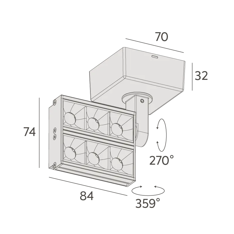MaterialCorpo em alumínio injetado. Acabamento microtexturizado. Pintura eletrostática a pó poliéster. Refletor em policarbonato metalizado. Recuo em policarbonato. Parafusos em aço inox.