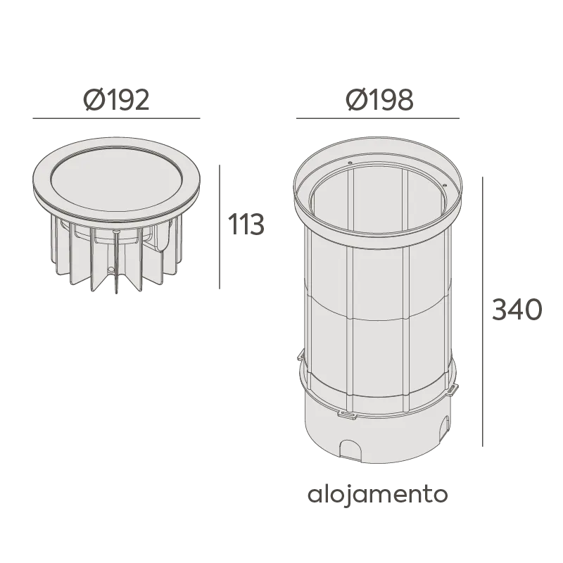 MaterialCorpo em alumínio injetado. Vidro temperado transparente. Lente em policarbonato metalizado. Pintura eletrostática a pó poliéster. Acabamento microtexturizado. Alojamento em polipropileno.