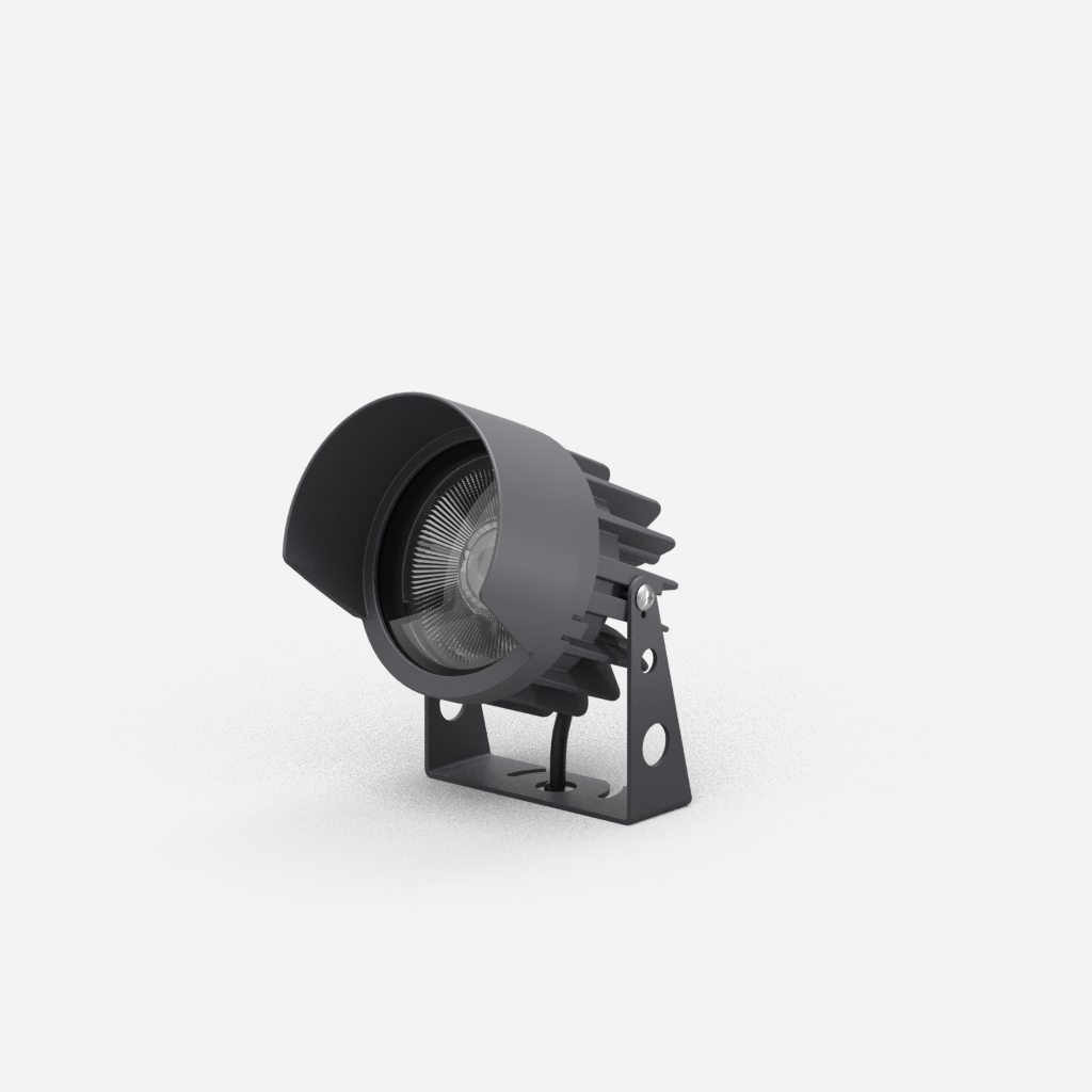 Corpo em alumínio injetado. Vidro temperado transparente. Lente em policarbotano alta transmitância. Pintura eletrostática a pó poliéster. Acabamento microtexturizado.