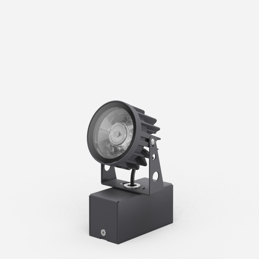MaterialCorpo em alumínio injetado. Vidro temperado transparente. Lente em policarbotano alta transmitância. Pintura eletrostática a pó poliéster. Acabamento microtexturizado.