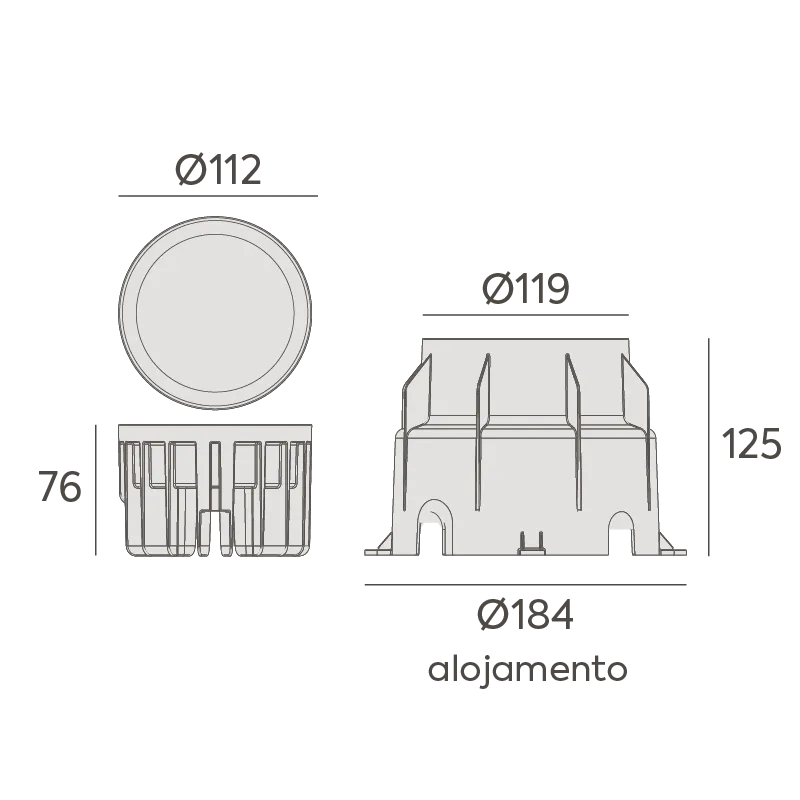 MaterialCorpo em alumínio injetado. Vidro temperado transparente. Lente em policarbotano alta transmitância. Pintura eletrostática a pó poliéster. Acabamento microtexturizado.