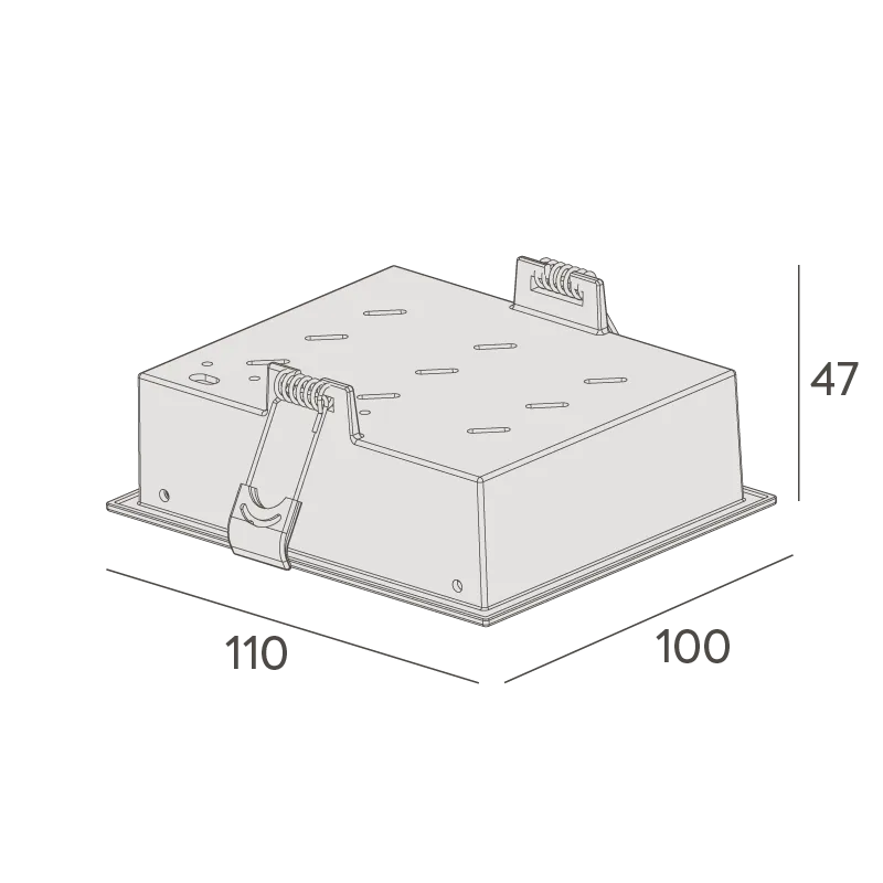 MaterialCorpo em alumínio injetado. Acabamento microtexturizado. Pintura eletrostática a pó poliéster. Refletor em policarbonato metalizado. Recuo em policarbonato. Molas em aço inox.