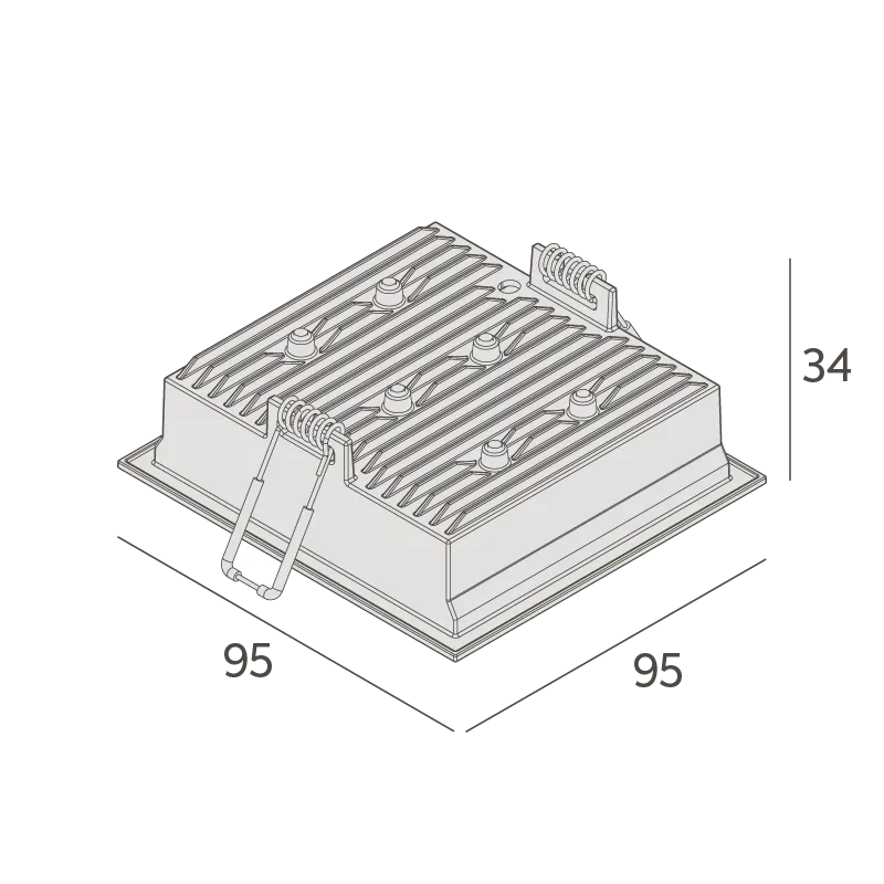 MaterialCorpo em alumínio injetado. Acabamento microtexturizado. Pintura eletrostática a pó poliéster. Refletor em policarbonato metalizado. Recuo em policarbonato. Molas em aço inox.
