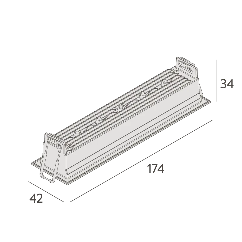 MaterialCorpo em alumínio injetado. Acabamento microtexturizado. Pintura eletrostática a pó poliéster. Refletor em policarbonato metalizado. Recuo em policarbonato. Molas em aço inox.
